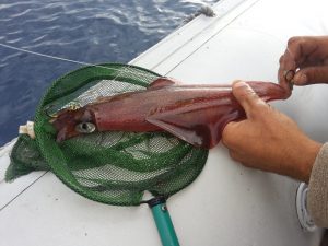 Una piccola nota sul recupero del calamaro, NON ABBIATE FRETTA, una volta che il calamaro avrà mangiato sull’artificiale, se continuerete a mantenere la trazione, e avrete messo l’ammortizzatore nella montatura, difficilmente il calamaro si “slamerà”, quindi non abbiate fretta e lasciatelo sfogare prima di portarlo sotto barca, dove inizierà la non facile gestione della guadinata, soprattutto se avremo più di una preda, ma non temete la pratica vi renderà infallibili.